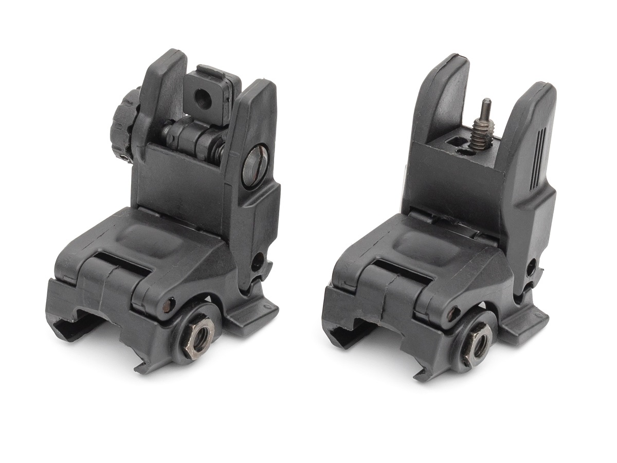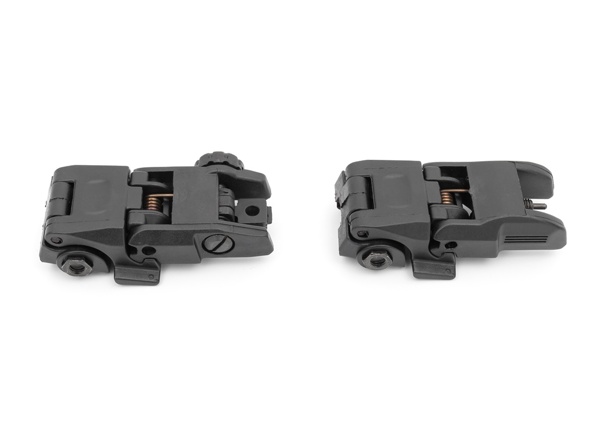 Перевести целик и мушку из сложенного положения в боевое возможно при помощи кнопки на корпусе.